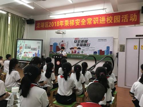 按照汕头市质量技术监督局“2018年特种设备安全生产月和安全生产万里行活动”的部署, 针对儿童求知欲强、善于接受新鲜事物、模仿能力强等特点,汕头市质监局龙湖分局联合汕头市电梯协会、日立(中国)电梯有限公司汕头分公司于2018年6月15日下午,在汕头市金晖小学举办了“乘梯安全常识进校园”教育宣传活动。市质监局龙湖分局局长宋琰、龙湖区教育局副局长林辉平、市局特监科陈自力副科长等领导出席了活动。