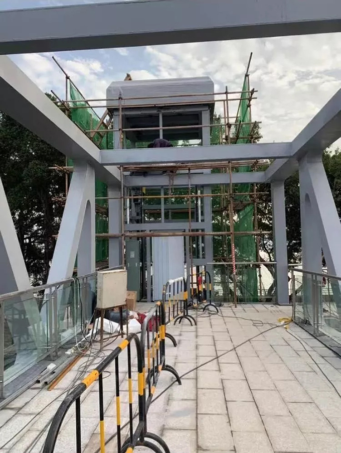 海滨路提速改造是市委、市政府为民办好事的具体举措,为实现过街行人和车辆分层通过,进一步提高路口通行能力。在位于海滨路与博爱路、石炮台路、龙眼南路交界处建三座人行天桥。天桥通行后,为配合人行天桥工程在春节前顺利开通,确保天桥配套的六台电梯按时投入使用,汕头经济特区广日电梯工程公司作为承担电梯安装的施工单位在任务重、时间紧的情况下,公司上下高度重视、全力以赴。一方面积极与电梯生产厂家协调,要求其全力赶工、按时发货。另一方面安排工程部经理、项目经理常驻现场,积极协助、配合天桥建设方广东潮泰建设有限公司加快对电梯井道钢结构和玻璃外墙装配等的施工工作。