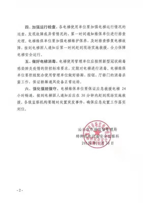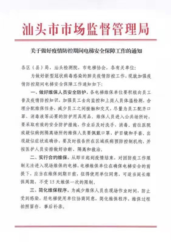 关于做好疫情防控期间电梯安全保障工作的通知