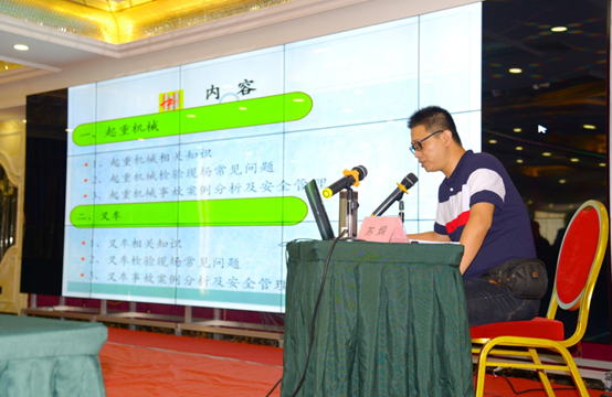 培训会上,首先由特监科资深监察员陈楚伟讲解特种设备安全管理和法律法规知识,就进一步加强对起重机械、叉车的安全管理,落实安全主体责任、预防和减少事故或故障的发生,针对性地、指导性地宣贯解读相关特种设备法律法规。然后由汕头检测院苏烔检验师一是从设备结构、工作原理、操作规范、风险防控等方面讲解起重机械和叉车相关知识以及使用管理注意事项;二是结合检验检测中常见的安全隐患问题,总结分析了使用管理中存在的不足和缺陷;三是通过各类典型事故案例,从事故类型、事故特点,事故原因、事故预防四个方面进行深入的剖析,以此向使用管理中存在的问题敲响安全的警钟,促使大家应严格遵守特种设备相关法律法规的要求,牢固树立安全意识,强化使用单位履行安全主体责任的意识。