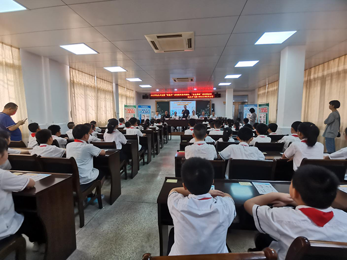 市市场监管局特监科黄坤明科长为活动致辞,他指出电梯发生事故大部分的原因是因乘客不遵守操作规程、盲目自救造成的,希望同学们认真听课,积极抢答,掌握电梯安全知识,将课堂上学习到的知识带回家中,带给身边的小伙伴,一起将“文明乘梯、安全乘梯”的理念传播到社会的各个角落。