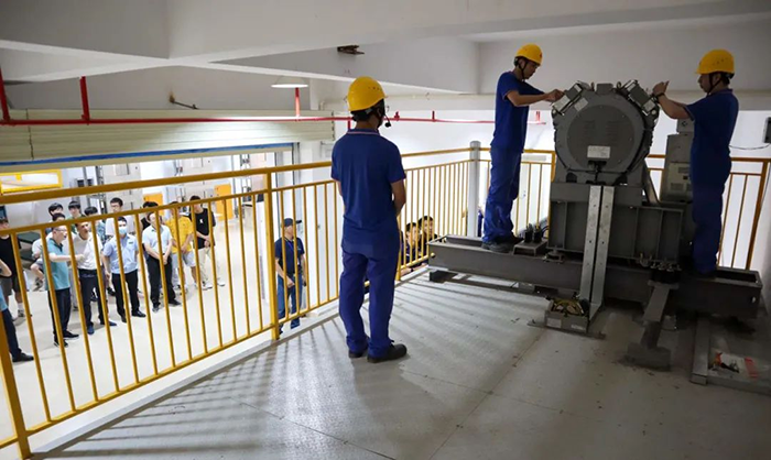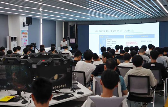 围绕2023年安全生产月“人人讲安全 个个会应急”主题,演练结束后,区市监部门继续举办电梯安全知识“进校园”的随堂活动,邀请市市监局特种机电设备科专家现场授课、解疑释惑,安排电梯生产、安装维保、使用等环节的相关法律法规,电梯事故案例及警示风险,维保、检验工作中遇到的问题及对策等有关课程,为即将走上电梯安装维修等相关岗位的电梯工程技术专业的大二学生送上宝贵的一课。