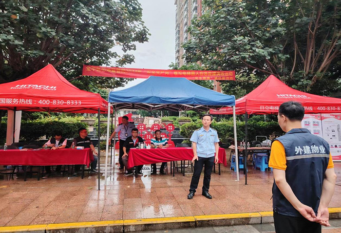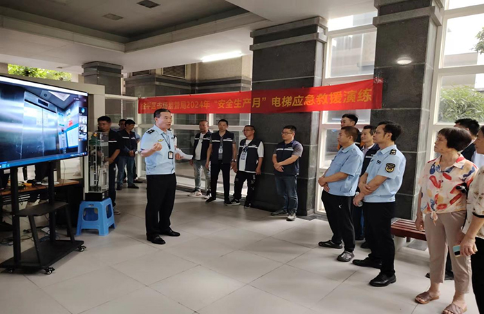 根据2024年“安全生产月”的工作部署,为切实做好特种设备安全防范工作,提高电梯故障的应急处置能力,6月14日下午,金平区市场监督管理局联合汕头市特种设备协会、日立汕头分公司在金平区天华美地住宅小区举办了一场模拟电梯困人应急救援演练活动,把电梯安全知识、文明乘梯意识送进社区。金平区市场监管局副局长林烈明、特设股负责人四级调研员唐合荣等相关单位领导出席了活动,林烈明副局长为活动致辞。
