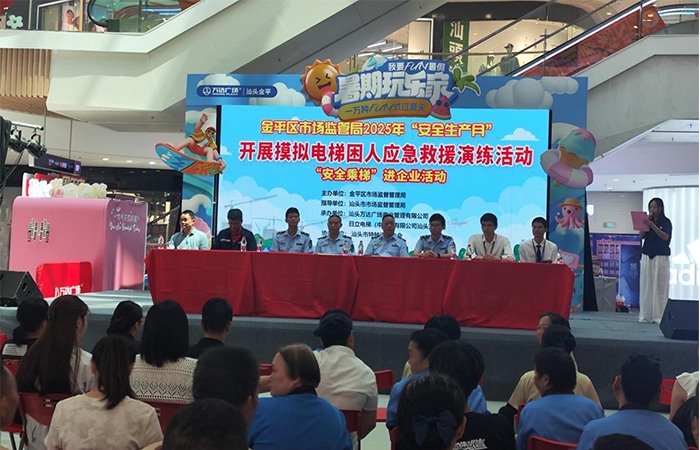 为提升电梯应急救援能力,保障群众乘梯安全,6月26日上午,在汕头市市场监督管理局、金平区市场监督管理局指导下,汕头市特种设备协会、日立电梯(中国)有限公司汕头分公司、万达广场物业管理有限公司联合在万达广场举办电梯应急救援演练活动。