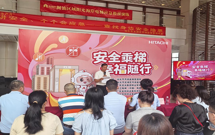 今年6月是第24个全国“安全生产月”,6月29日上午,在汕头市市场监督管理局、汕头市龙湖区市场监督管理局的指导下,汕头市特种设备协会、日立电梯(中国)有限公司汕头分公司、广东省特种设备检测研究院汕头检测院、广东龙光集团物业管理有限公司联合在阳光海岸社区开展主题为“人人讲安全、个个会应急——查找身边安全隐患”的电梯安全进社区活动。